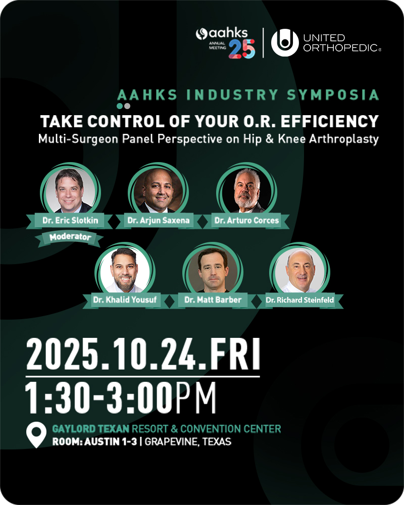 We are proud to announce that United Orthopedic Corporation will be an exhibitor partner at the 2025 AAHKS (American Association of Hip and Knee Surgeons) Annual Meeting. Please join us October 24–25, 2025, at the Gaylord Texan Resort and Convention Center, Booth #1131, where we will showcase our innovative orthopedic implant and instrument portfolios.